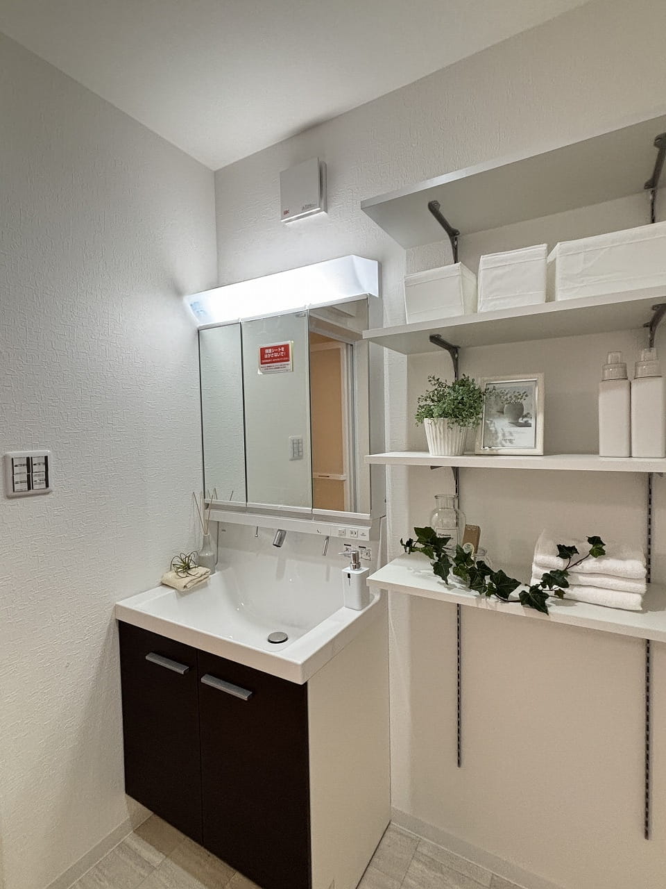 洗面室の隣には広々ランドリールームを設置しており、