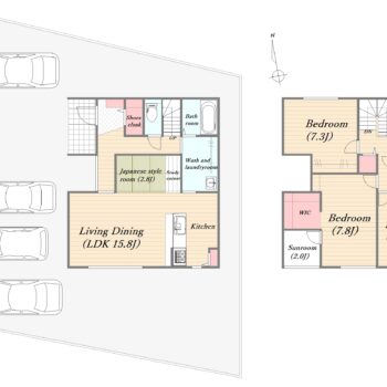 65坪以上の広い敷地で、3台以上駐車可能です。
