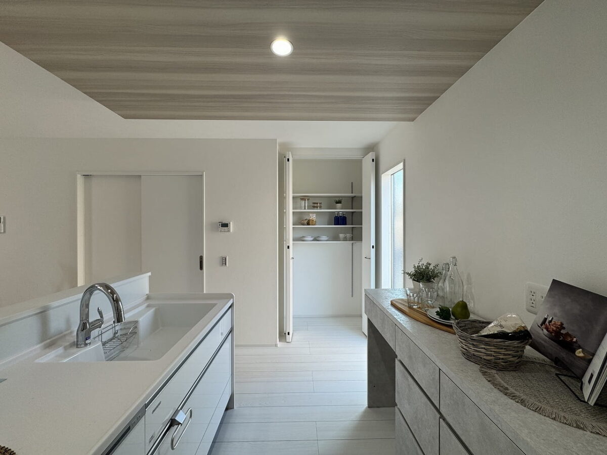 システムキッチン/対面キッチン/パントリー(食器・食品の収納庫)/食器洗浄乾燥機/IHクッキングヒーター/床下収納