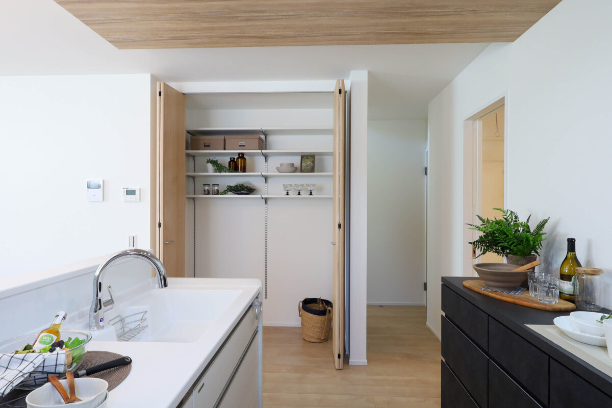 システムキッチン/対面キッチン/パントリー(食器・食品の収納庫)/食器洗浄乾燥機/IHクッキングヒーター/床下収納