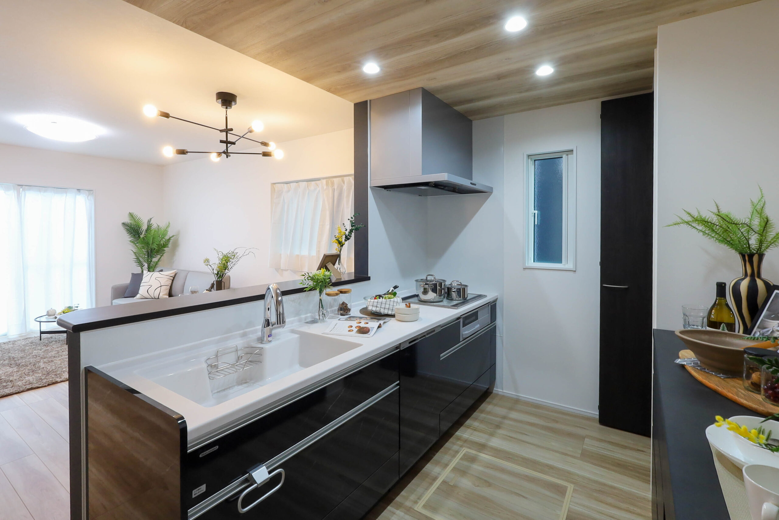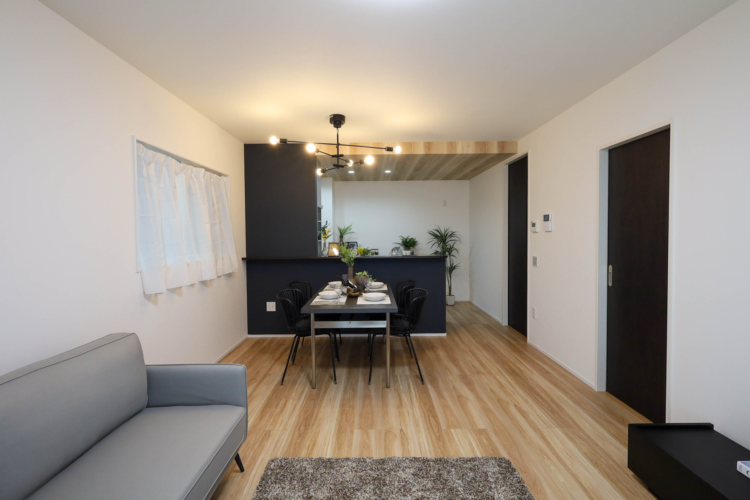 黒を効かせたスタイリッシュなLDKを強調