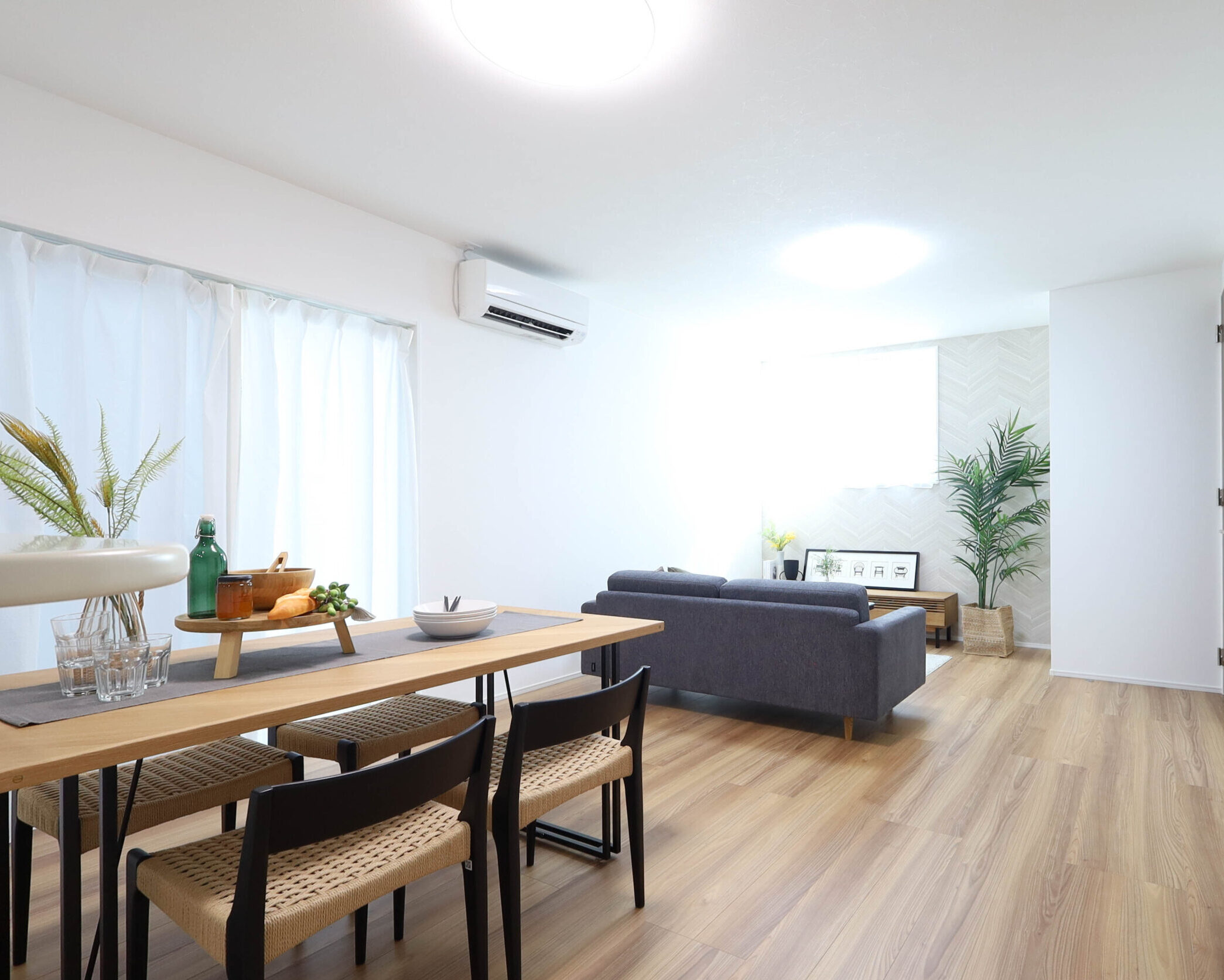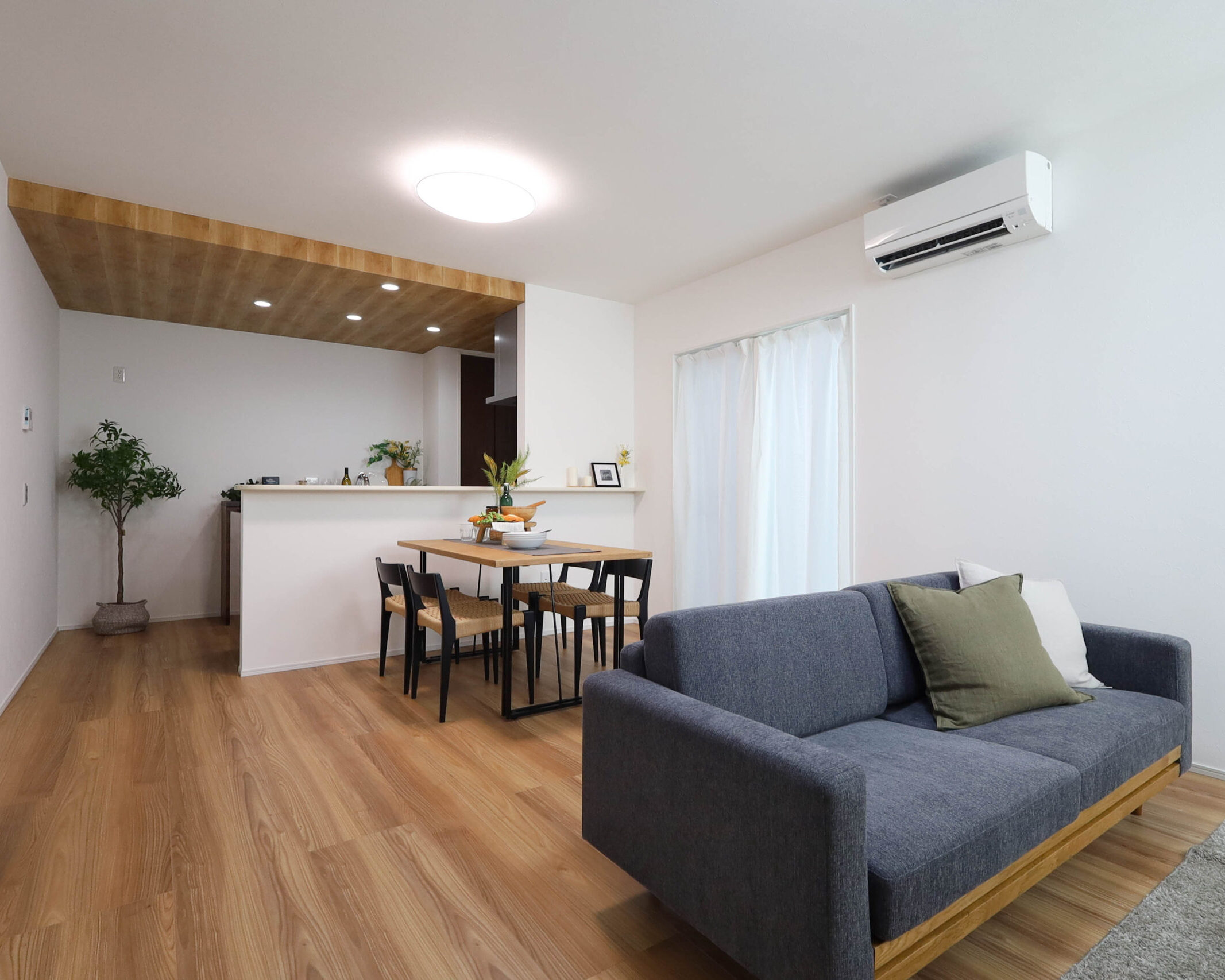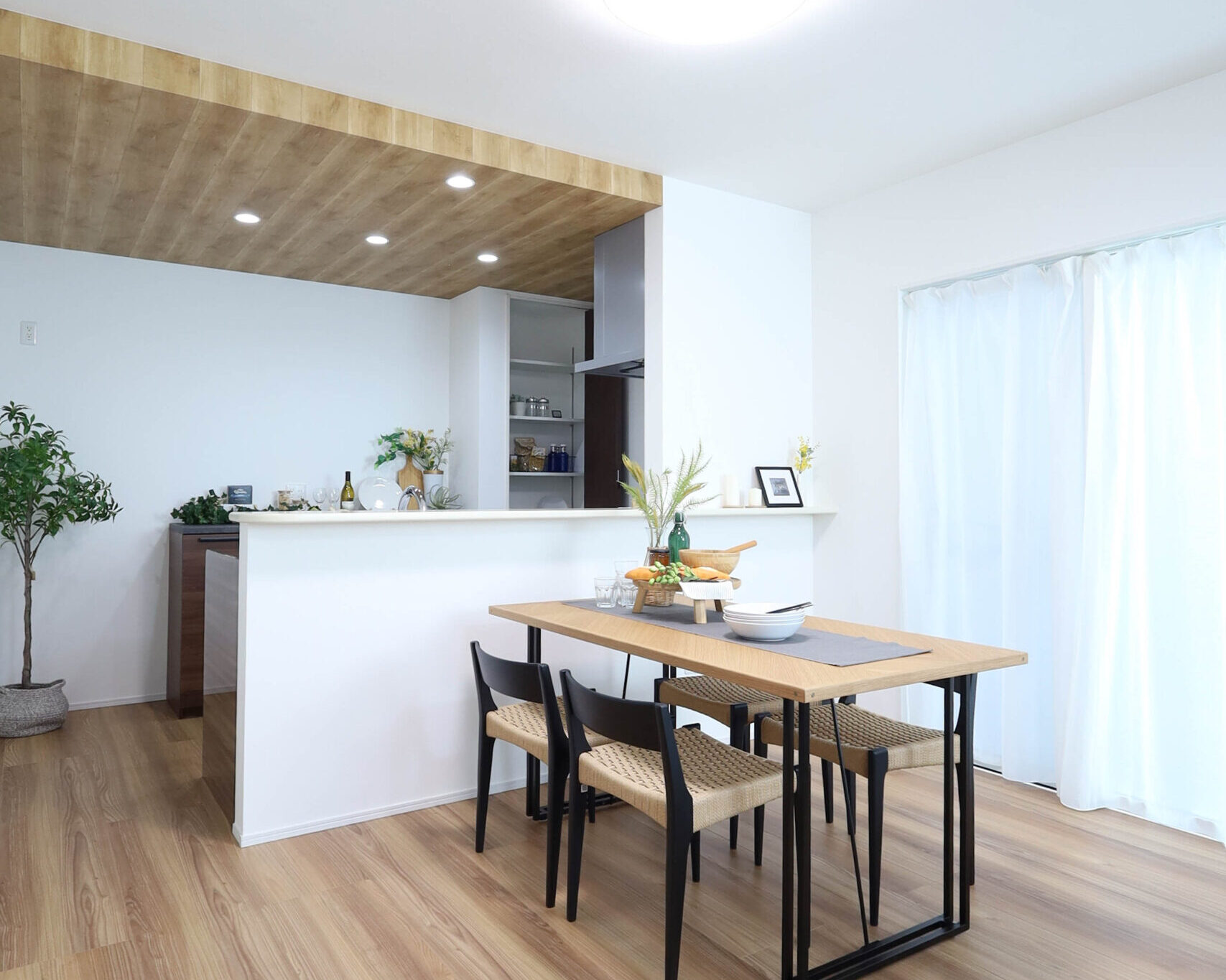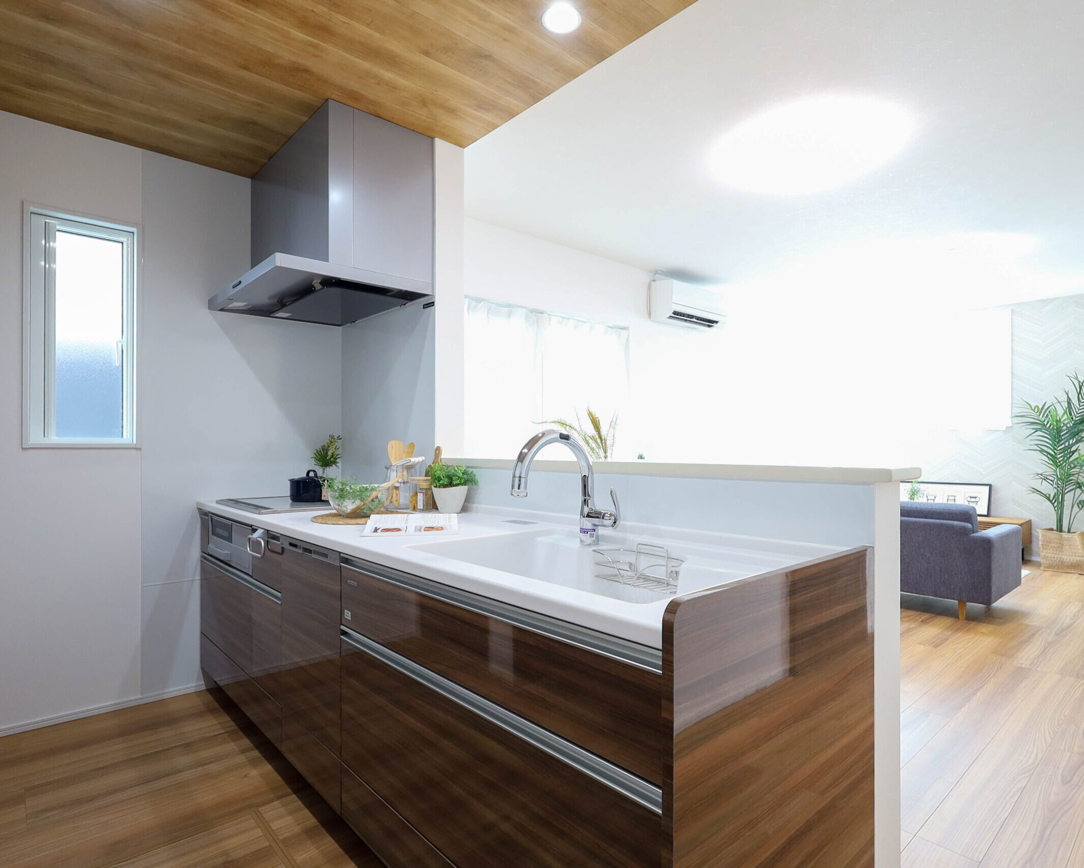 キッチン上部の下がり天井がアクセントとなり、より印象が残る室内です。