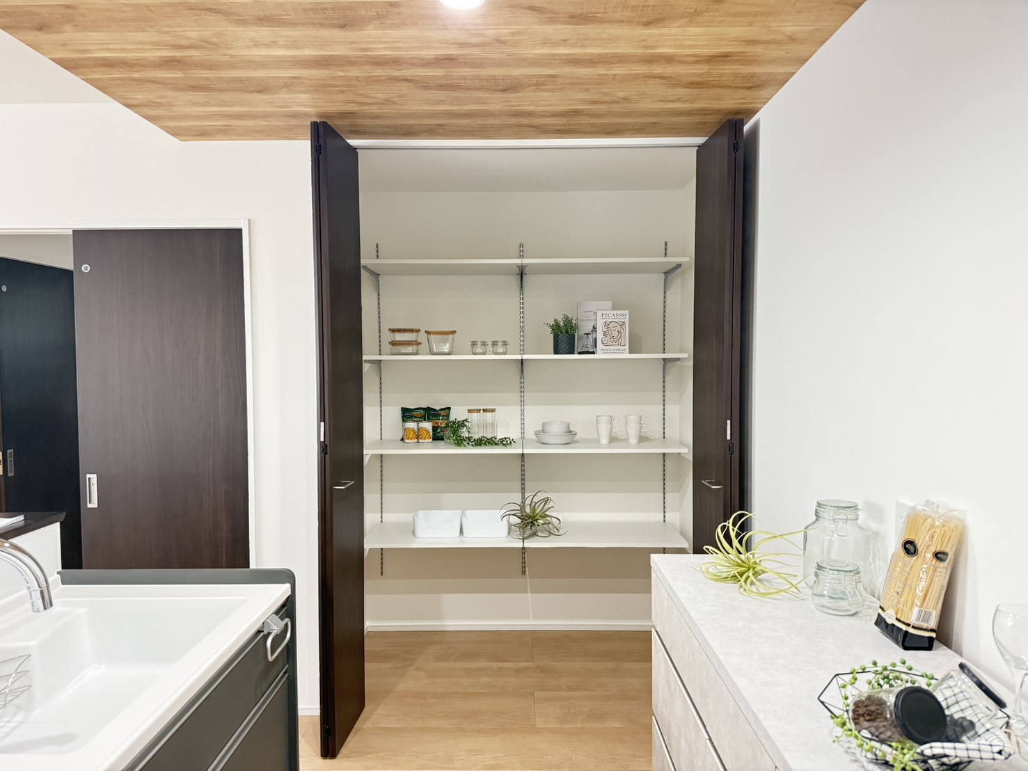 キッチン横に大容量のパントリーを設けています。ホットプレートなどキッチン家電や備蓄品のストックもたっぷり収納できます